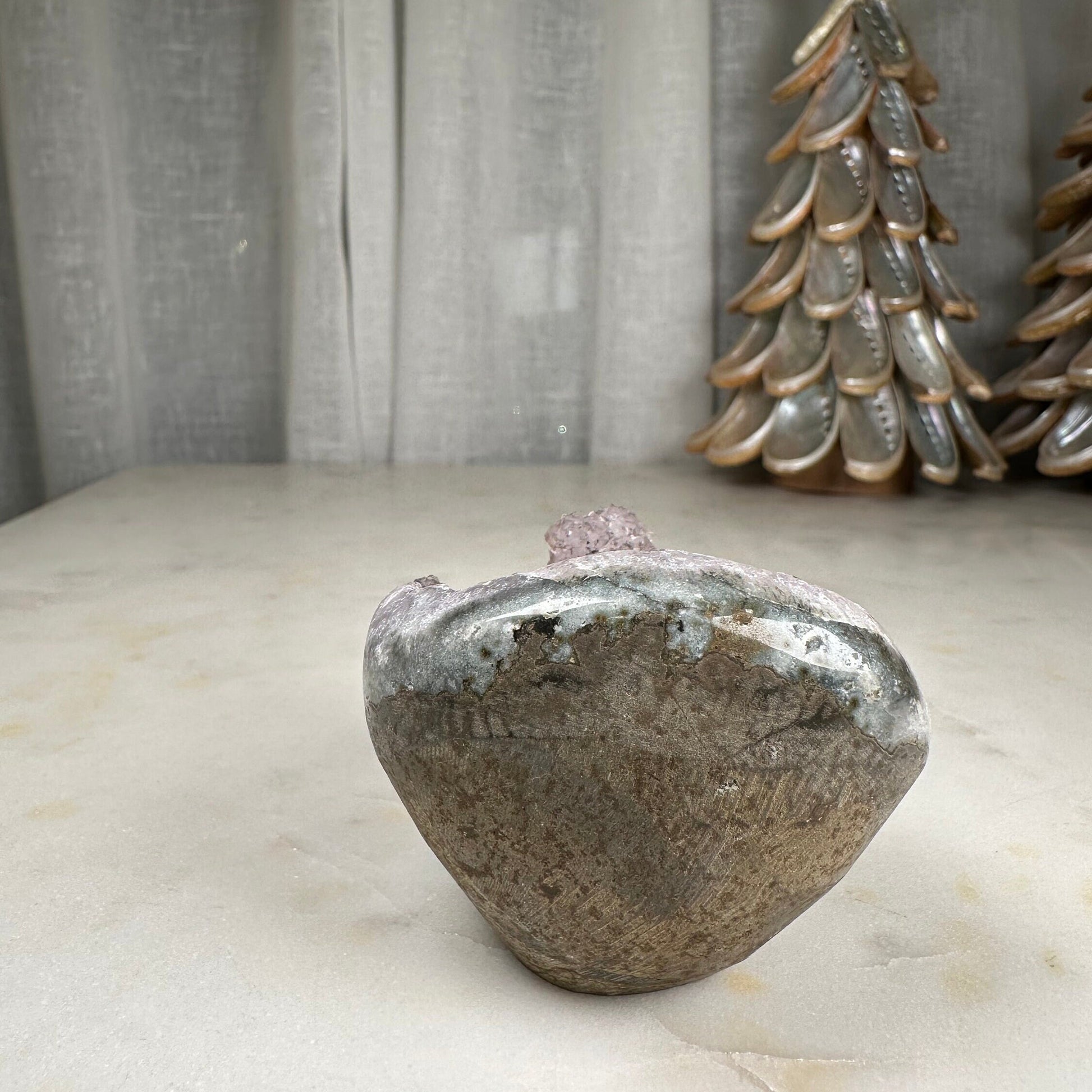 This natural amethyst geode cluster weighs 234g and measures 5.1cm in height and 7.25cm in width. Its vibrant purple crystal points showcase the raw beauty of amethyst in its natural form.
