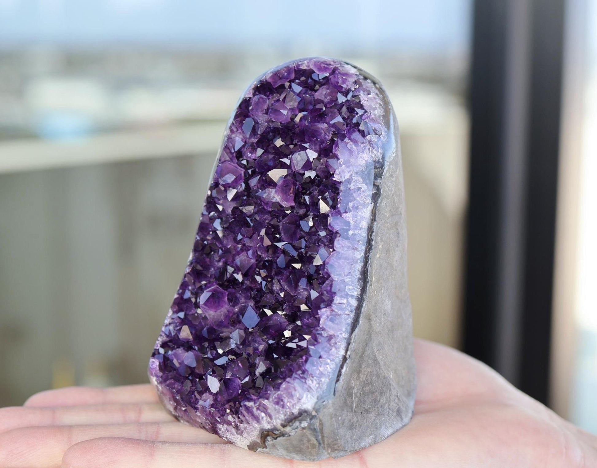 Bring home this one-of-a-kind amethyst geode and enjoy both its visual charm and natural elegance.