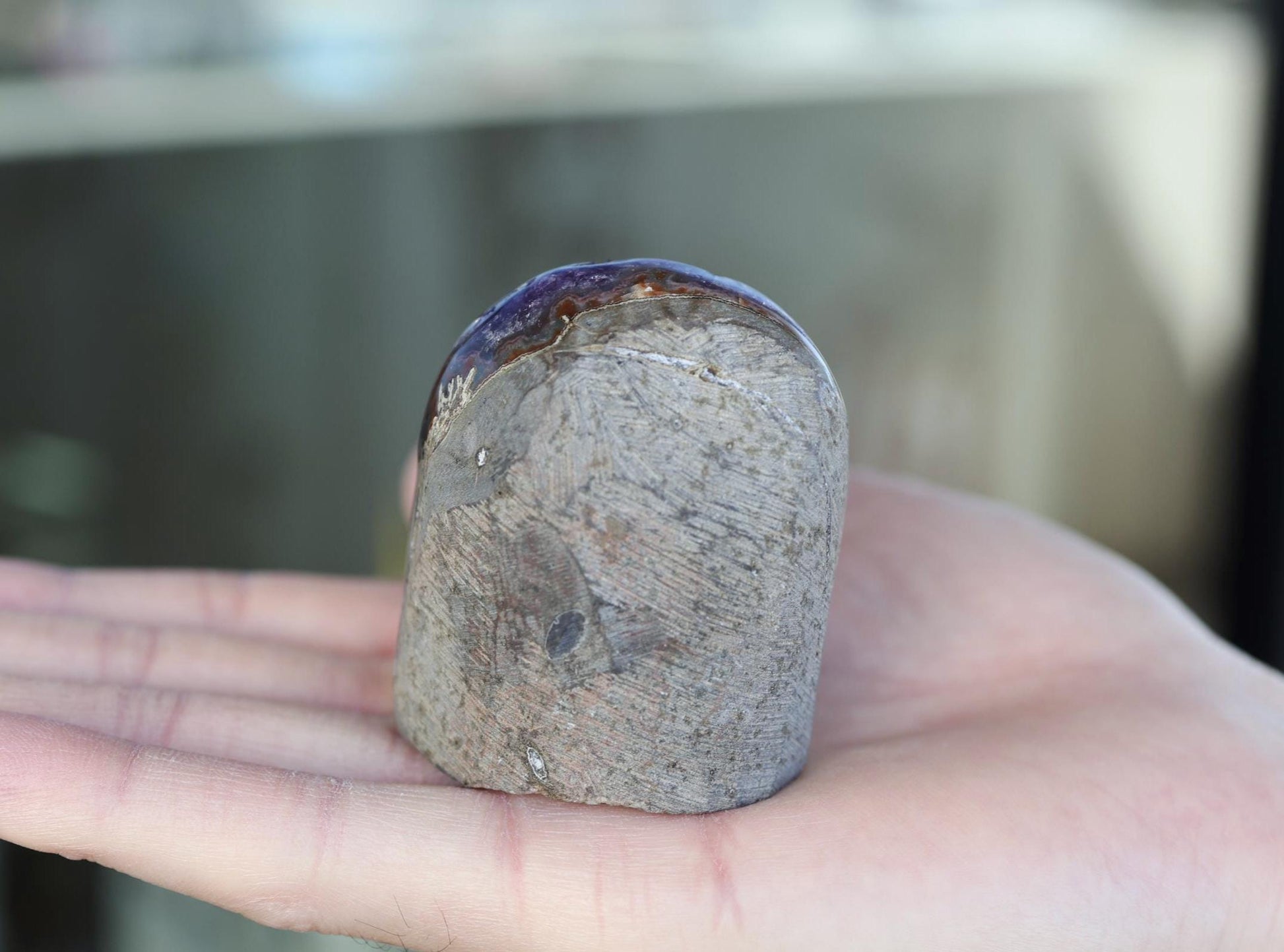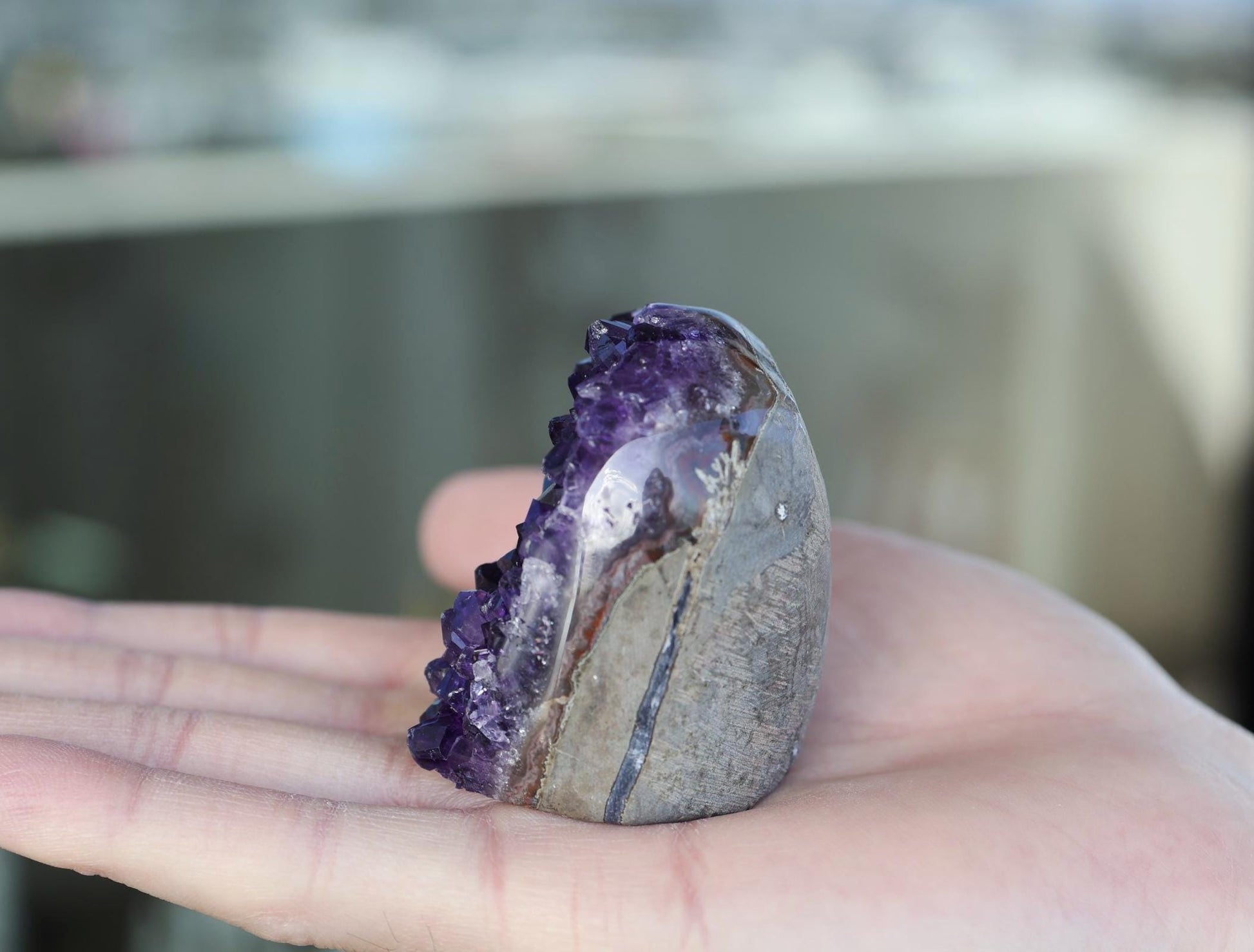 This natural purple amethyst geode weighs 164g and measures 5.7cm in height and 4.6cm in width. Its vibrant deep violet hues and sparkling crystals highlight the unique beauty of amethyst.